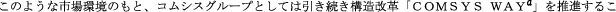 文中の将来に関する事項は、当連結会計年度末現在においてコムシスグループが判断したものである。