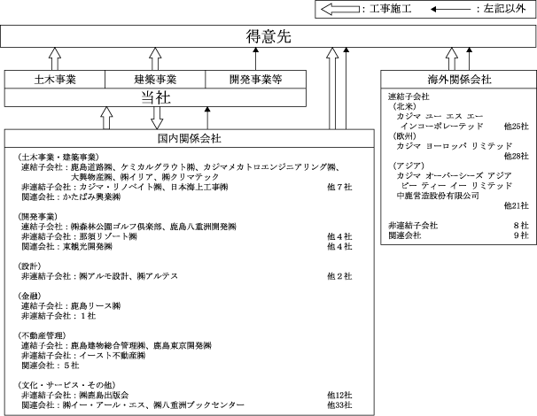 また、鹿島リース㈱が総合リース業を、鹿島建物総合管理㈱が建物総合管理業を行っており、その一部を当社が発注している。