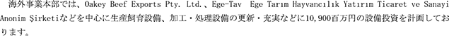 海外事業本部 | 10,900 | 食肉の生産飼育設備、加工・処理設備及び営業設備などの更新及び充実 | 同上 |