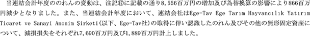 当社は、平成27年4月1日にEge-Tav社の発行済株式60.0%を取得し、同社を子会社といたしました。このEge-Tav社の株式の譲り受けは、当社の養鶏事業との相乗効果創出及び、急伸する新興市場である中東諸国やヨーロッパ諸国における当社グループのプレゼンスを高めることを目的としています。