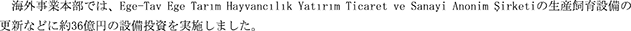 食肉事業本部では、日本ホワイトファーム㈱、インターファーム㈱などの生産飼育設備の更新・改修などに約63億円、日本物流センター㈱、西日本フード㈱などの物流・営業設備の充実に約120億円、日本フードパッカー㈱、日本ピュアフード㈱などの処理・加工設備の更新に約37億円など合計約221億円の設備投資を実施しました。