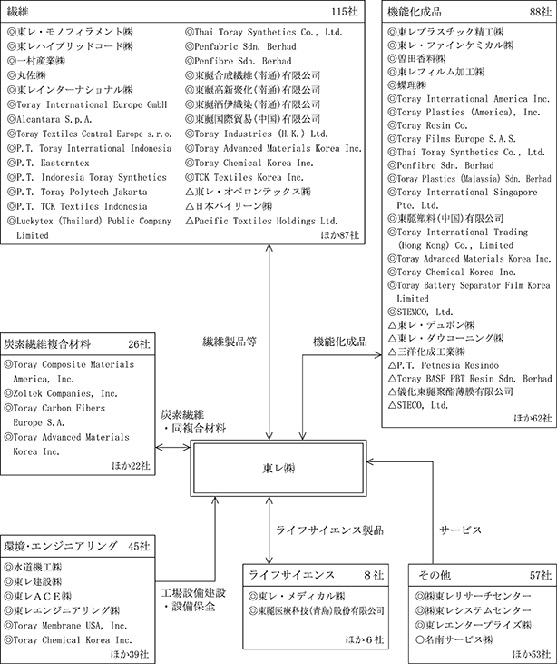3 上記連結子会社のうち、当連結会計年度末現在、東レインターナショナル㈱、Toray Textiles Europe Ltd.、P.T. Indonesia Toray Synthetics、Penfibre Sdn. Berhad、東麗合成繊維(南通)有限公司、東麗酒伊織染(南通)有限公司、Toray Advanced Materials Korea Inc.、Toray Chemical Korea Inc.、Toray Plastics (America), Inc.、Toray Battery Separator Film Korea Limited、Toray Carbon Fibers Europe S.A.及び東麗(中国)投資有限公司は特定子会社である。