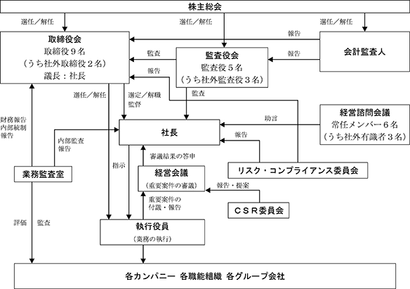 (2) 企業経営や企業法務に豊かな経験を持つ社外有識者をメンバーとした経営諮問会議を設け、法令遵守、株主権保護、経営の透明性確保の視点から社長の業務執行に対して助言を行う。