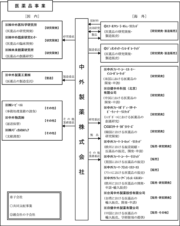 3.中外サノフィ-アベンティス・エスエヌシーは、当社の議決権の所有割合は100分の50以下でありますが、実質的に支配しているため子会社としております。