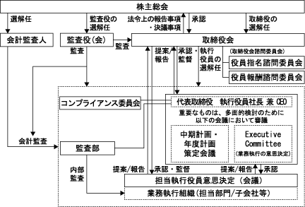 評価部会は、執行役員社長 兼 CEOの業績評価を行うとともに、執行役員社長 兼 CEOによるその他の執行役員(取締役を兼務する者を含む)の個人考課の内容を審議します。また、個人考課の内容は各役員の昇降格にも関係することから、評価部会における審議の内容及び結果は、役員指名諮問委員会にも通知されます。これを受け、2016年度からは、評価部会を役員指名諮問委員会及び役員報酬諮問委員会の双方に共通の部会と位置づけています。