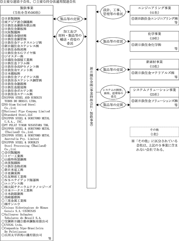(注) 1 日新製鋼㈱、大阪製鐵㈱、ジオスター㈱、合同製鐵㈱、トピー工業㈱、山陽特殊製鋼㈱、共英製鋼㈱、日鉄住金物産㈱、新日本電工㈱、日亜鋼業㈱、住友精密工業㈱、NSユナイテッド海運㈱、ユニプレス㈱、㈱大阪チタニウムテクノロジーズ、日本コークス工業㈱、黒崎播磨㈱、三晃金属工業㈱、㈱サンユウ及び新日鉄住金ソリューションズ㈱は、有価証券報告書を提出している。