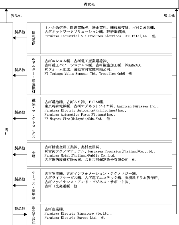 当企業集団は、情報通信、エネルギー・産業機材、電装・エレクトロニクス及び金属の各事業において培われた技術を発展、応用した製品の製造販売を主な内容とし、更に各事業に関連する物流、研究及びその他のサービス等の事業活動を展開しております。