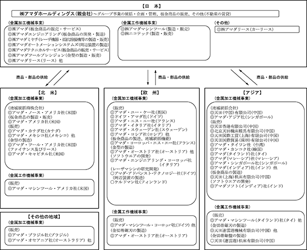アマダ・スイス社 | Pfungen, | 千スイス・ | 金属加工機械器具等の販売、修理 | 100.0 (100.0) | ― | ・当社商品及び部品のスイス市場への販売等 |