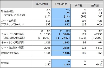 ・カード会員の新規入会は74万人(前年比+2%)、博多マルイの開店により前年に対し2万人増加いたしましたが、グループ外入会は提携カードの発行開始が下半期に集中したことなどから前年を下回りました。