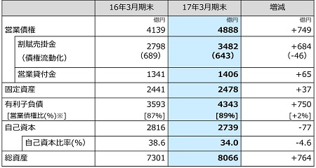 ・取扱高は1兆7,233億円(前年比+17%)、ショッピングクレジットが前年から19%増と好調に推移いたしました。なかでも、ご利用方法の改善によりリボ・分割払いのご利用が増加、リボ・分割払いの残高は2,555億円(前年比+25%)、前年から510億円の増加となりました。