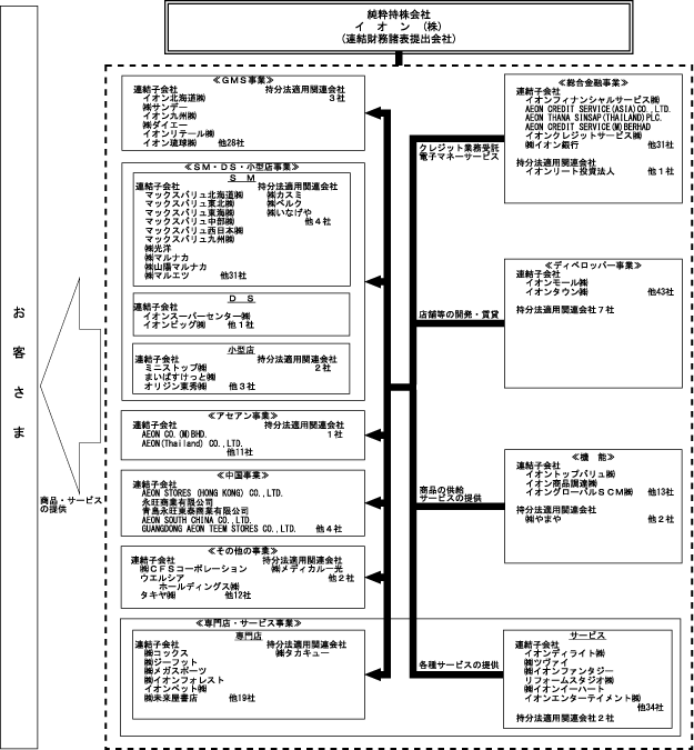 イオンリテール㈱、㈱ダイエー、㈱マルエツ、イオンフィナンシャルサービス㈱、㈱イオン銀行、イオンモール㈱、AEON CO.(M)BHD.