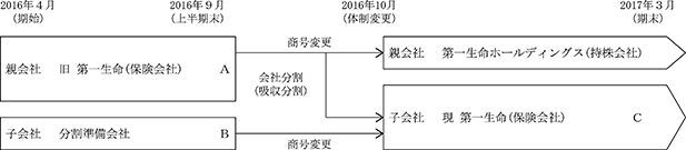 なお、当社の報告セグメントは、中間連結会計期間までは単一セグメントとしておりましたが、2016年10月1日付で当社グループが持株会社体制へ移行したことに伴い、「国内生命保険事業」、「海外保険事業」、「その他事業」の3つを新たに報告セグメントとして設定いたしました。詳細は、「第5 経理の状況 1 連結財務諸表等 (1)連結財務諸表 注記事項(セグメント情報等)」をご参照ください。
