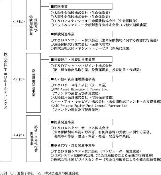 (注) 1 主要な事業の内容欄には、事業部門の名称を記載しております。なお、セグメント情報では、生命保険会社別に「太陽生命保険」、「大同生命保険」及び「T&Dフィナンシャル生命保険」の3つを報告セグメントとしております。